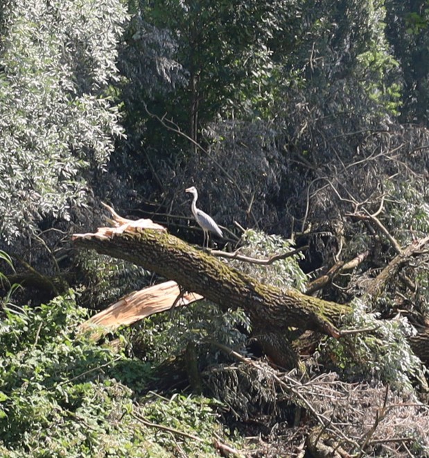 Héron sur un arbre tombé lors de l'orage du 15.06.2025