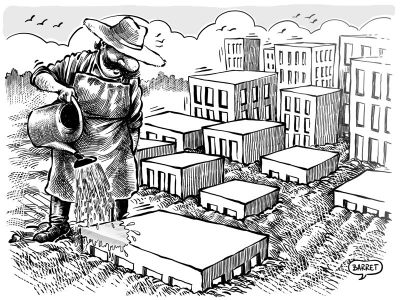 Néologisme décrivant un style d’ architecture contemporain sans esthétique ni âme. Le seule objectif de ces immeubles est la maximisation de la surface lucrative au plus vite.